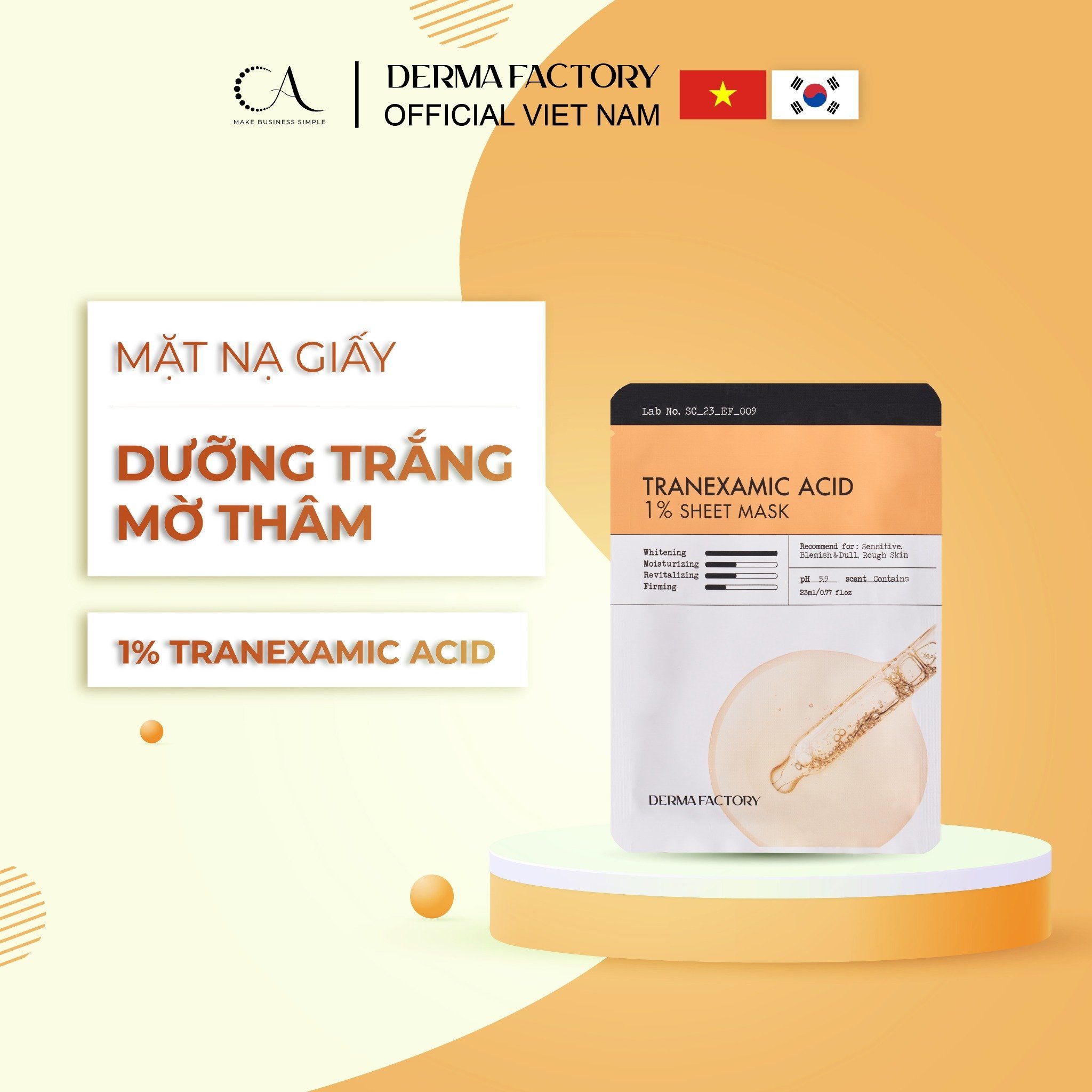 Derma Factory Tranexamic Acid 1% Sheet Mask - Mặt nạ dưỡng sáng và phục hồi da