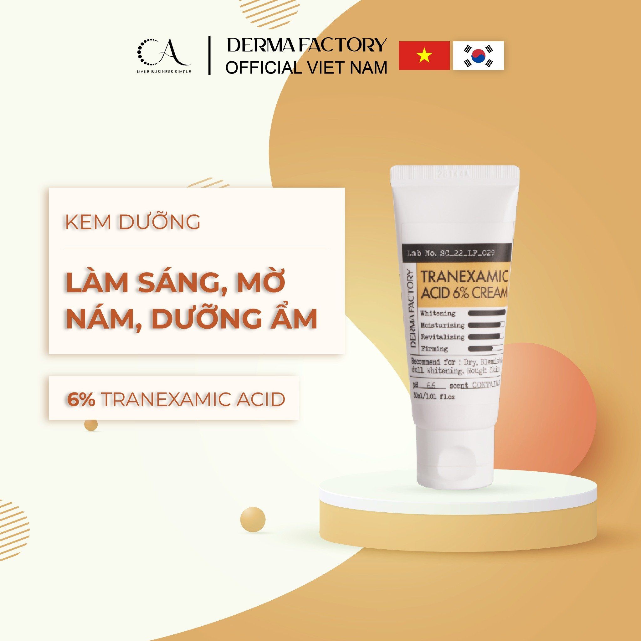 Derma Factory Tranexamic Acid 6% Cream 30ml - Kem dưỡng mờ thâm nám & làm đều màu da chuyên sâu