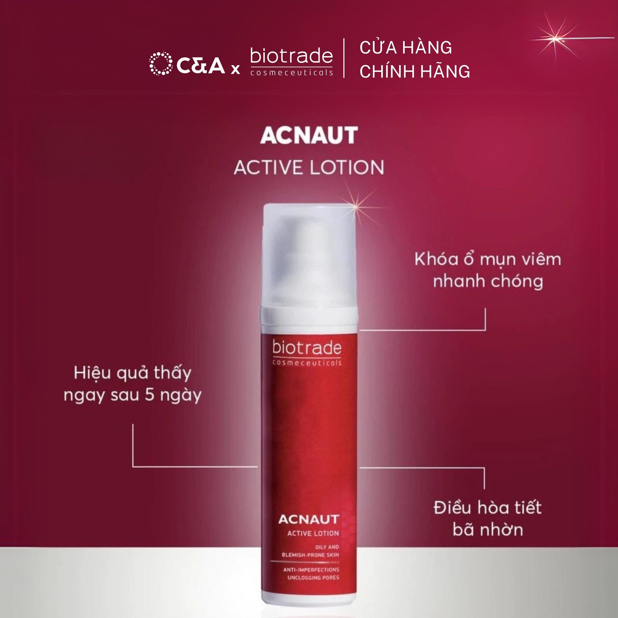 Biotrade Acnaut Active Lotion mang lại hiệu quả nổi bật cho da đang gặp mụn viêm, mụn mủ: