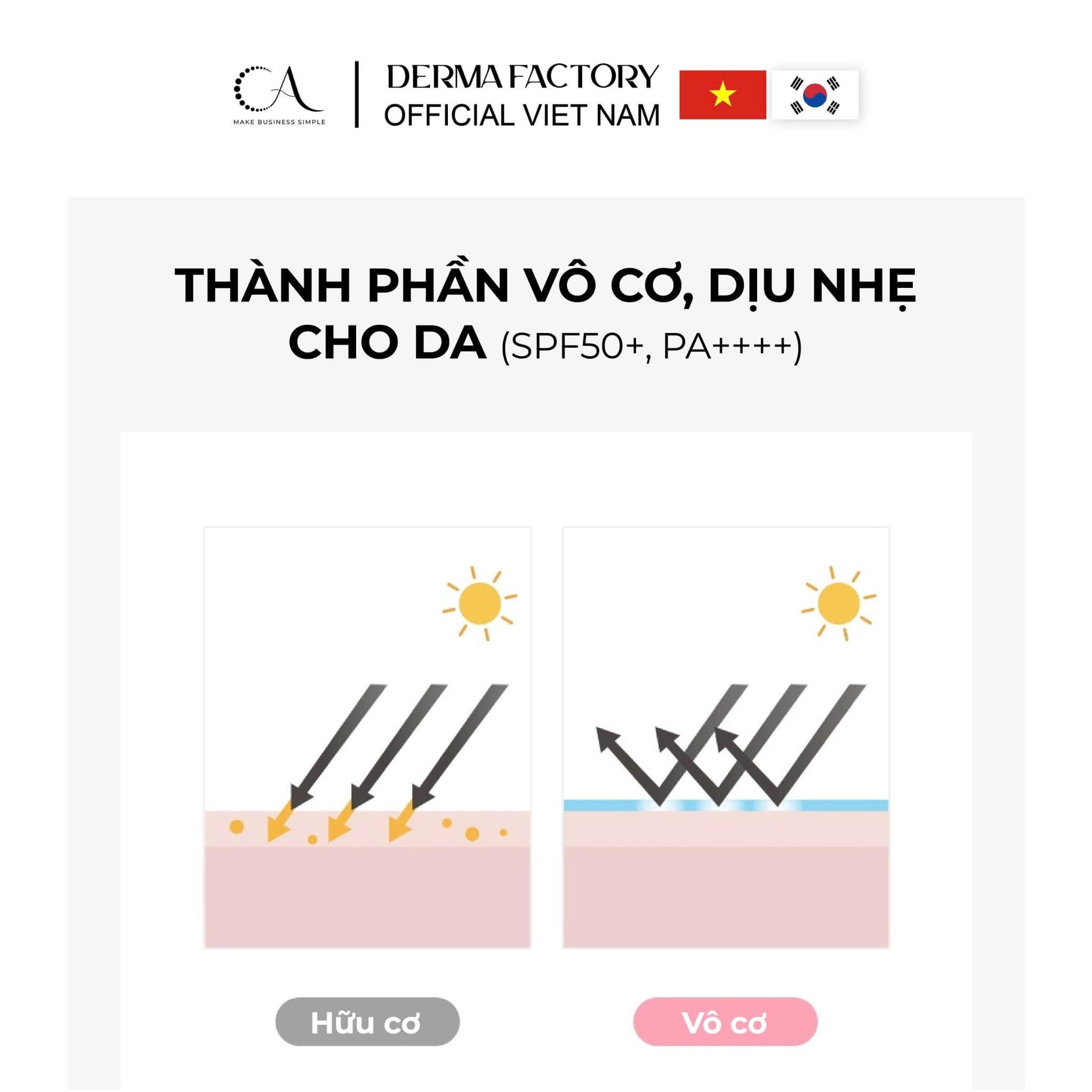 Derma Factory Tone Up Suncream được phát triển theo công thức “3 trong 1” chống nắng, dưỡng sáng và hiệu chỉnh tông da với bảng thành phần an toàn, lành tính: