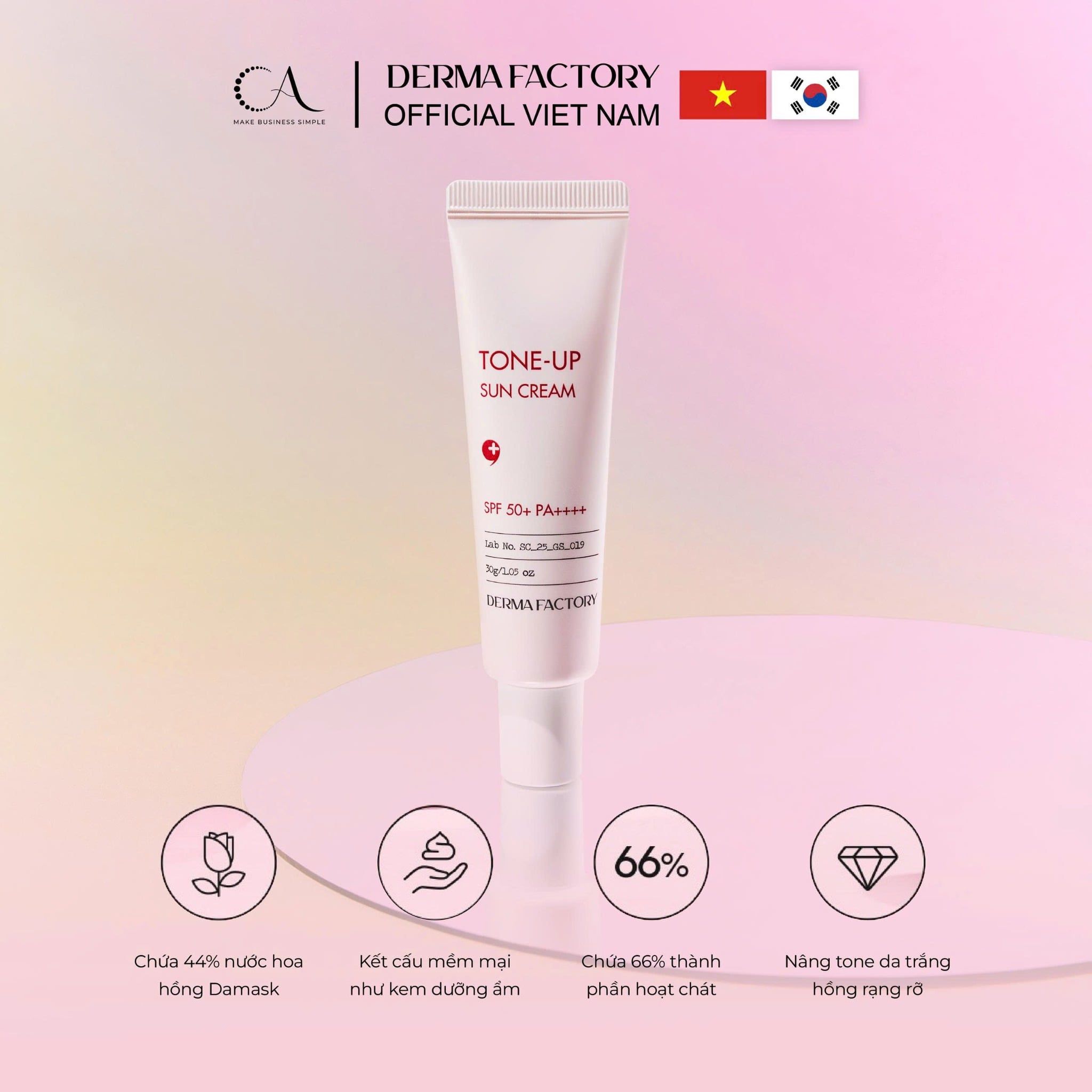 Kem chống nắng Derma Factory Tone Up SPF50+ PA++++ (30ml) - Kem chống nắng nâng tông, bảo vệ và làm sáng da