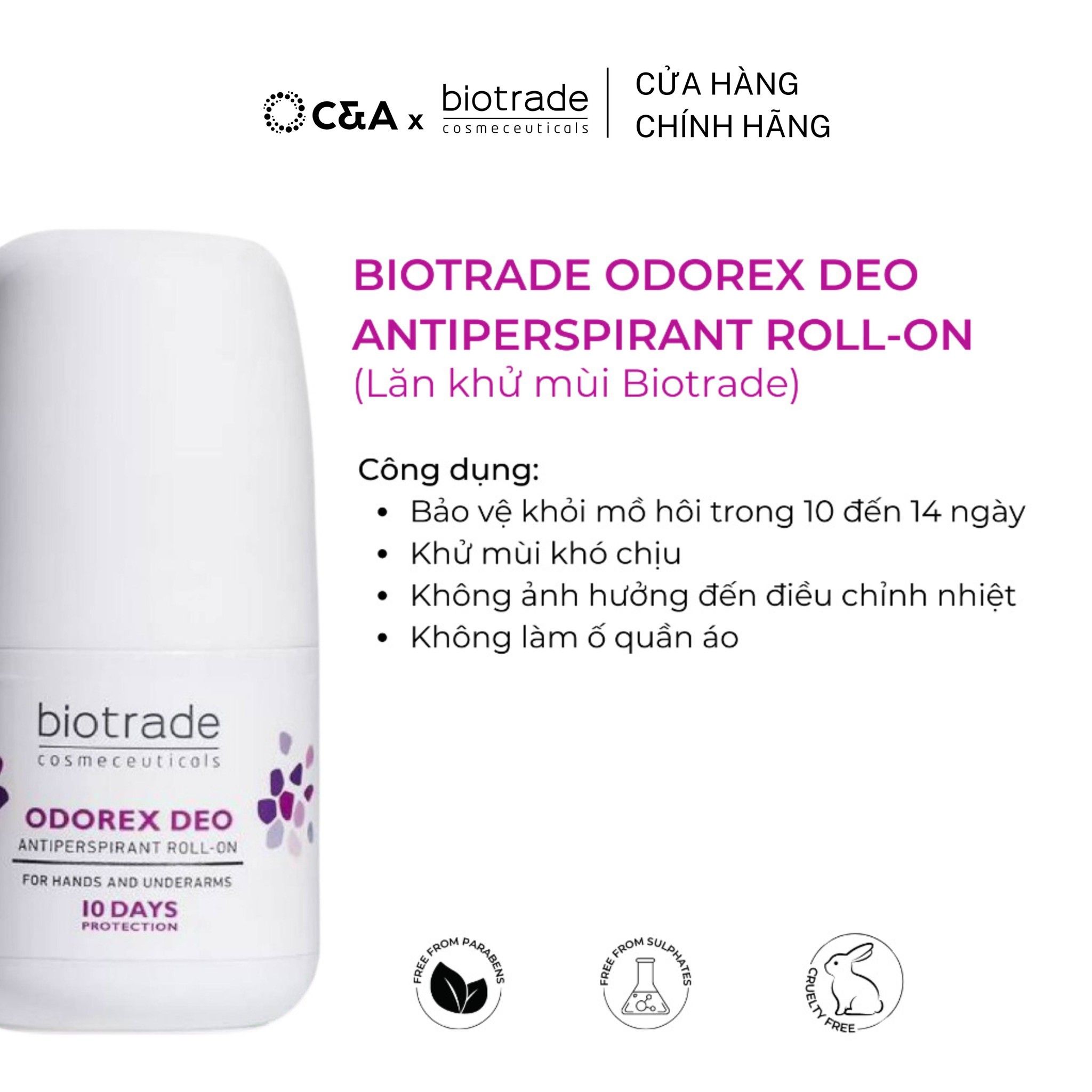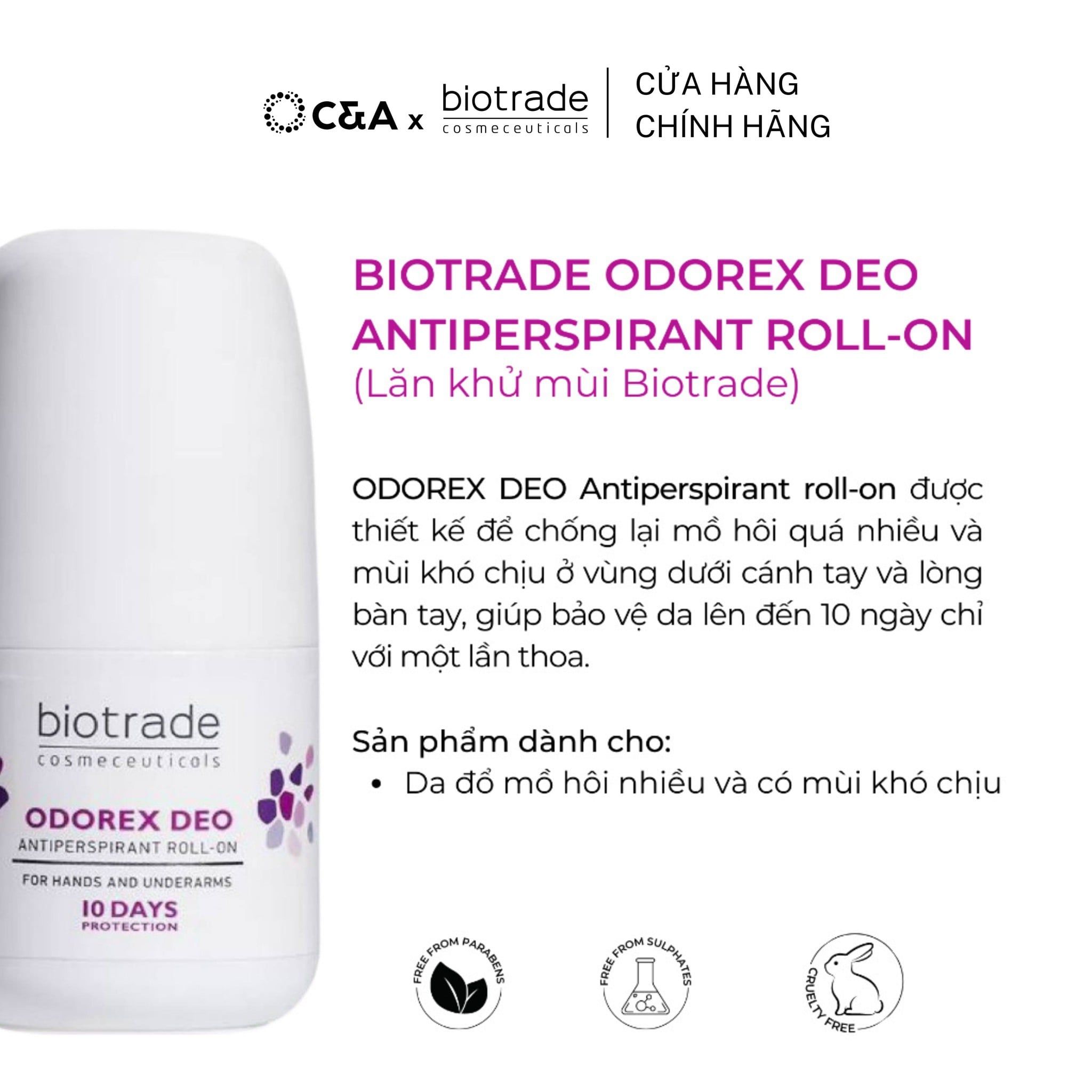 Lăn Khử Mùi Biotrade Odorex Deo Antiperspirant Roll On lòng bàn tay và nách Biotrade
